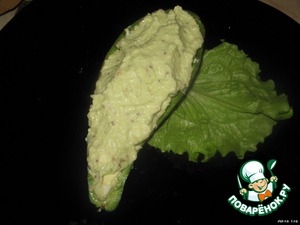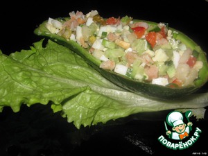 Выкладываем салат в лодочки. Устанавливаем лодочку на листья салата.