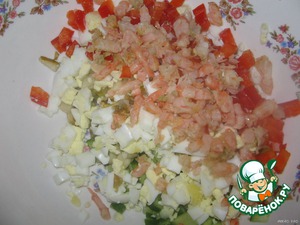 Солим и перчим салат - по вкусу. Я немного посолила и поперчила и соус.