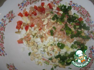 Кешью (я просто ножом измельчила) и зелёный лук.