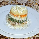 Этот салат я придумала в январе, когда за окном было морозно и снежно. Так хотелось тепла и солнца! И вот придумался вкусный, изящный салат… Попробуйте!