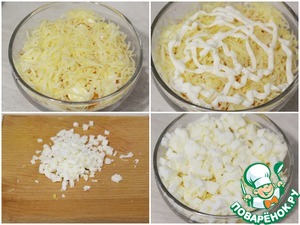 Затем добавить тертый сыр, смазать его оставшимся майонезом.