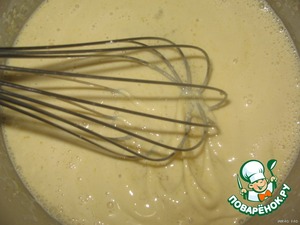 Сливки 150 мл (остальные - в крем) смешиваем венчиком с желтками и сахаром. -