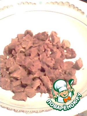 • Говядину отварила в небольшом количестве воды, после закипания добавила перец горошком, соль; сварила до готовности. Охладила в бульоне.