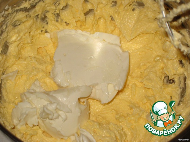 Затем добавить сливочный сыр, слегка взбить, буквально 30-40 сек на больших оборотах миксера.
