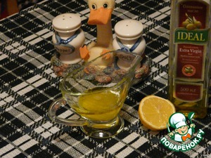 Приготовить соус: соединить оливковое масло, сок лимона, соль, сахар