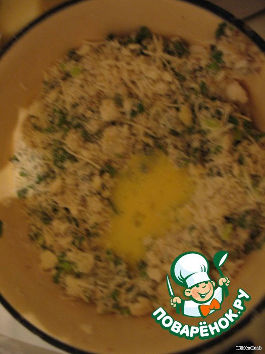 Все перемешиваем и добавляем взбитое яйцо (фото, жалко, нечеткое вышло)