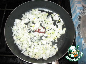 На сковороду кладем сливочное масло (немного) и наливаем немного растительного масла - на этой смеси обжариваем мелко нарезанный репчатый лук