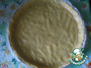 Берём тесто и укладываем аккуратно по всей форме. Толщина теста примерно 5 мм.