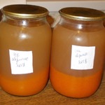 Затем разводим абрикосы с водой в соотношении 1 :1 или можно меньше воды, добавляем сахар по вкусу и, как масса закипит, через 5 -10 мин заливаем в банки и закатываем крышками...