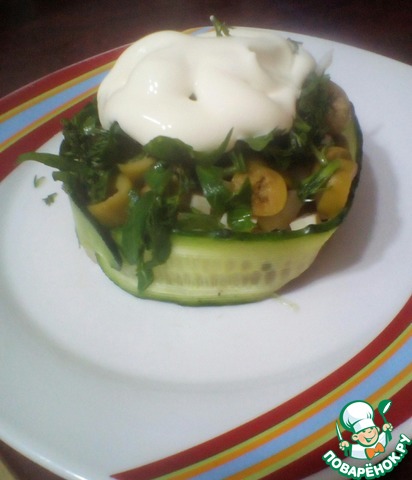 Рецепт «Салат из кальмара, грибов и оливок»: