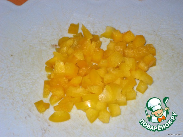 Сладкий перец нарезать мелким кубиком.