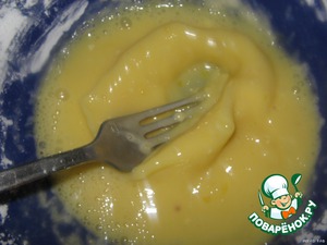 Приготовить кляр. Для этого смешать яйцо с крахмалом. Можно добавить немного соли и перца - по вкусу. -