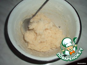 Когда масса (заварная) остынет, добавить разведенные дрожжи и остальное количество муки.