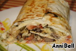 Мясо с овощами и соусом, завeрнутое в лаваш. Сытно и вкусно.