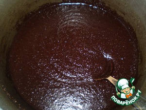 Кипятить на медленном огне, постоянно помешивая, примерно 10-15 минут, не давая массе закипеть. -