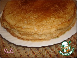 После выпечки каждого блина промазываем его сливочным маслом, чтобы блины не слипались.