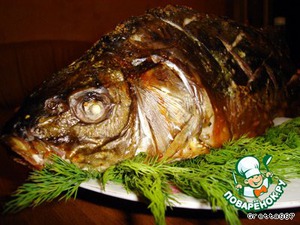 да, вкусный-вкусный. я ж не обманываю никогда. вкусно, потому что начинка не сырая и сочетание отличное этой начинки с карпом. вот только животик я бы зашила ему (на всякий случай), долго разве? а вообще я все зашиваю, завязываю ..