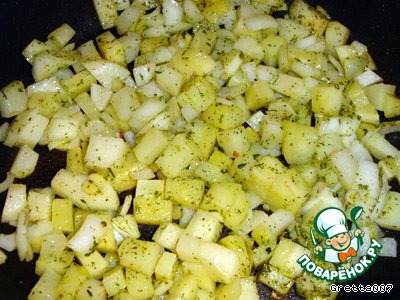 добавляем соль и специи по вкусу (у меня универсальная приправа - 15 трав и специй), обжариваем на небольшом количестве масла до полуготовности.