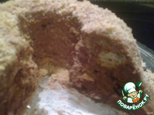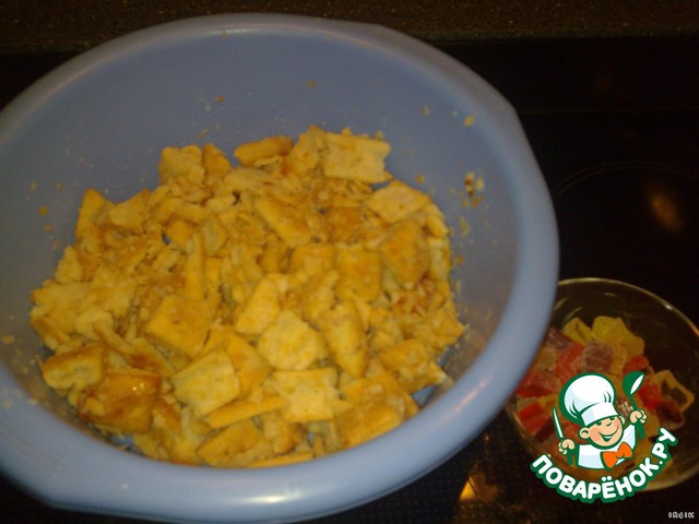 Ломаем печенье на крупные кусочки, сбрызгиваем оставшимся молоком и коньяком