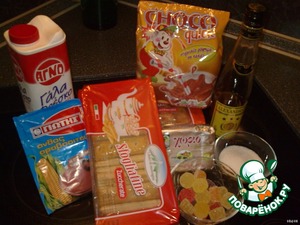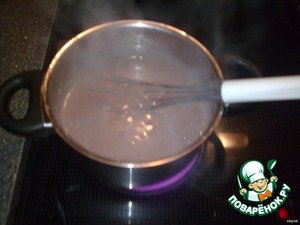 Из 3,5 стаканов молока (стакан 200 мл), сахара и пудинга варим крем, как указано на упаковке
