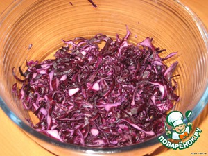 - Капуста краснокочанная (у меня большой, поэтому я взяла половину) — 1 вилок