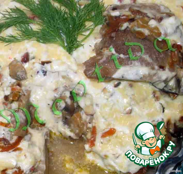 Это сытное.. восхитительное.. шикарное лакомство посвящается.. моему маленькому принцу - Ванюше!.. настоящему помощнику и защитнику своей восхитительной мамочки – Леночки (HELENA D).. С Днем Защитника Отечества!! Будь всегда защитой и опорой!.. Добрым талисманом и ангелом хранителем для нее!!... Ну, а всем поварятам предлагаю побаловать своих принцев и королей в этот замечательный мужской праздник и всем вместе насладиться нежнейшей мякотью говяжьего языка, запеченного с жареными шампиньончиками.. под ароматнейшей сырно-миндально-смет анной шапкой.. Вкусно и в горячем, и в холодном виде.