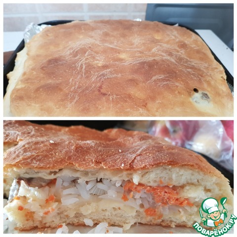 Раскатать вторую часть теста и закрыть пирог. Залепить края.