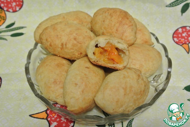 Кстати, и замес и расстойка и даже выпечка ватрушек - все в ХП. Вот как раз вот так вплотную 6 штучек вошли и прекрасно пропеклись. Очень удобно на случай небольшой порции, не гонять большую духовку. Я частенько для себя одной использую ХП как мини-духовочку