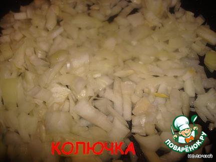 Мелко режем лук и обжариваем до золотистого цвета
