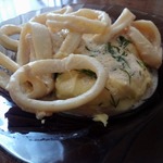 А это блюдо для любителей морепродуктов. Очень вкусные, нежные и сочные кальмары в сметанном соусе. Можно как закуску.