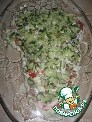 Я выложила в такой форме, но можно и просто сделать обычный слоёный салат. -