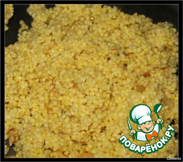 Пшено промыть, залить 1 стаканом кипятка и варить на небольшом огне в течение 7-10 минут. Оставшуюся воду - слить.