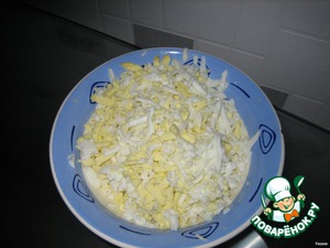 Яйца отвариваем, очищаем, натираем на крупной терке.