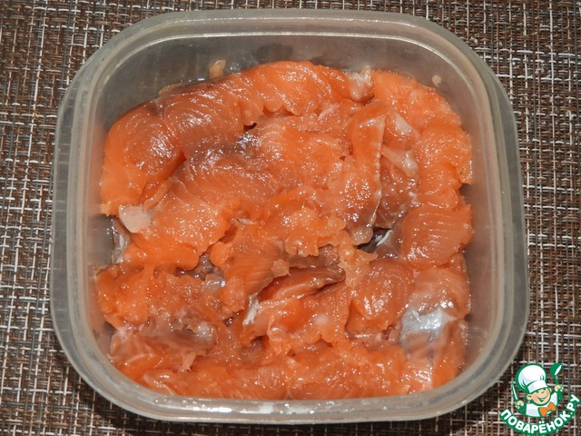 Далее нарезаем рыбу на куски, толщина зависит от ваших предпочтений. Мы любим так