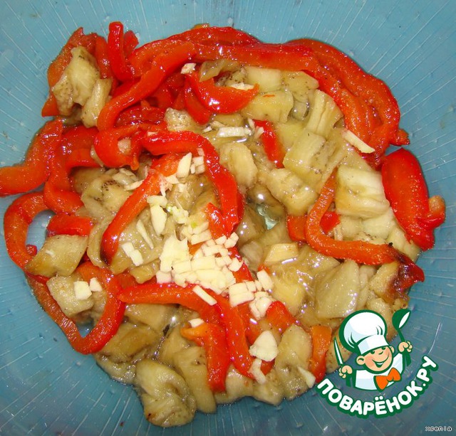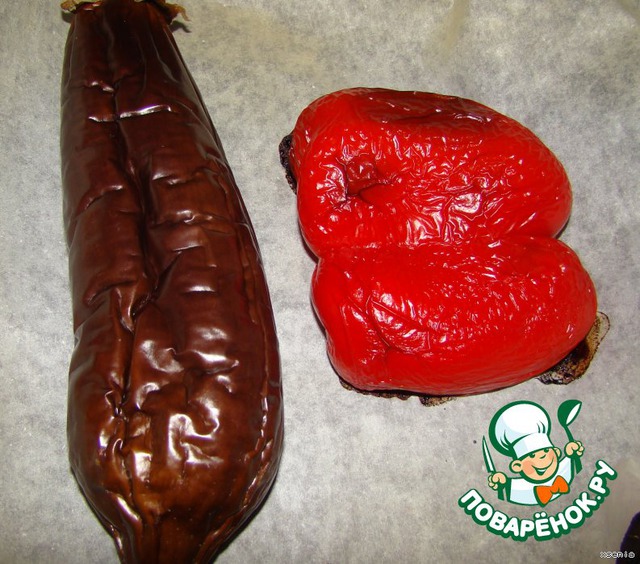 Баклажан и перец запеките в духовке.. запекайте 30-40 минут