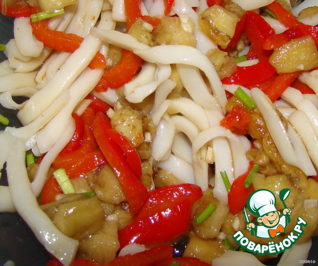 Рецепт «Салат из кальмаров и баклажанов "Яркий"»: