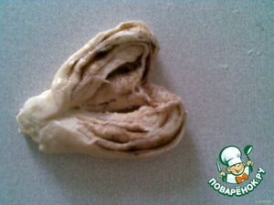 Тесто должно быть не густым (лучше потом перед разделкой припылить мукой), быстро в процессе замеса начинает отлипать от рук. -
