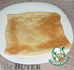 Один пласт теста раскатать тонко и разделить на 3 части.