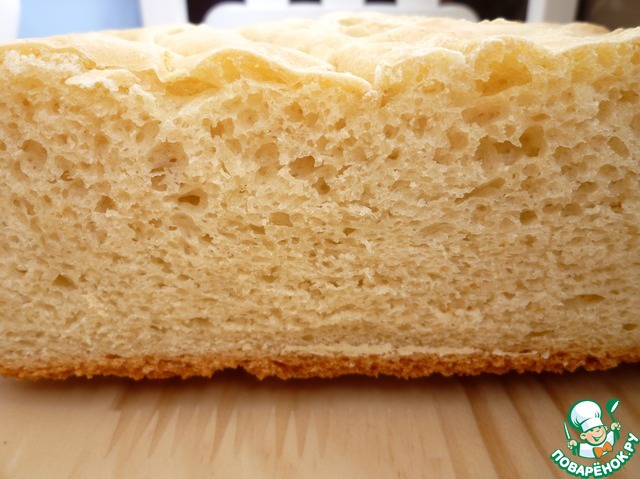 Хлебушку после выпечки необходимо дать возможность остыть на решетке минут 30-40, чего я, как всегда от нетерпения не сделала:-[, и разрезала его.