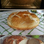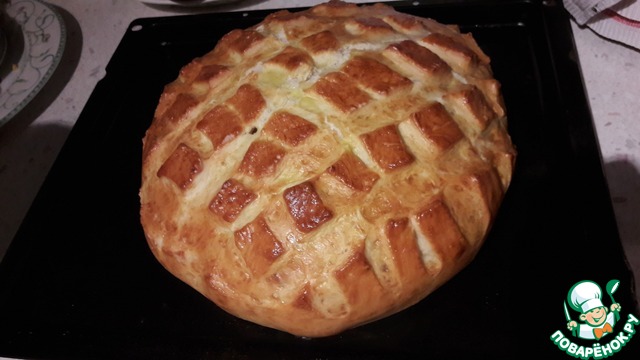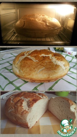 И отправляем в разогретую духовку (до 220 гр Ц ), первые 15 минут печем с паром (под противень я поставила сковороду, в которую очень аккуратно, чтобы не обжечься (!!!)влила граммов 150 кипятка и быстро закрыла духовку), через 15 минут вода выкипит, понижаем температуру до 200 гр Ц и печем еще 20-30 минут до румяной корочки.