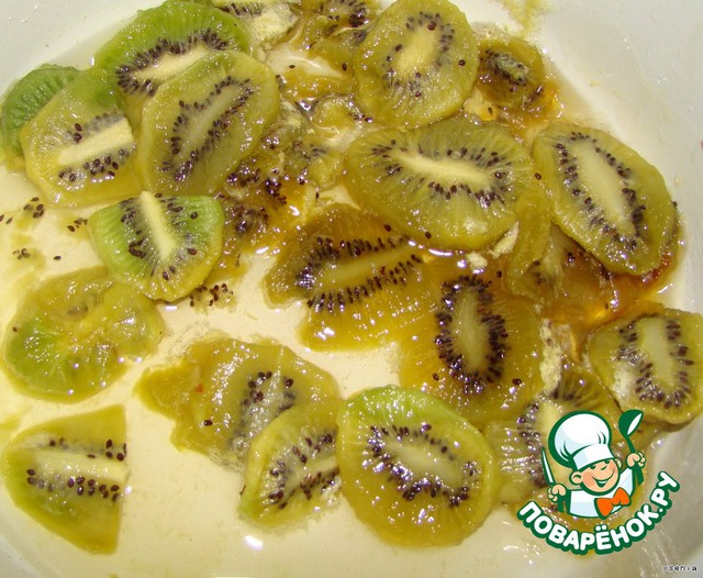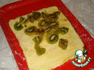 Выкладываем киви... пропитываем сахарным сиропом...
