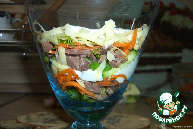 Салатик очень красиво смотрится при подаче на стол и не менее вкусный. Интересное сочетание сердца, огурчиков, сыра и морковки корейской,,,,