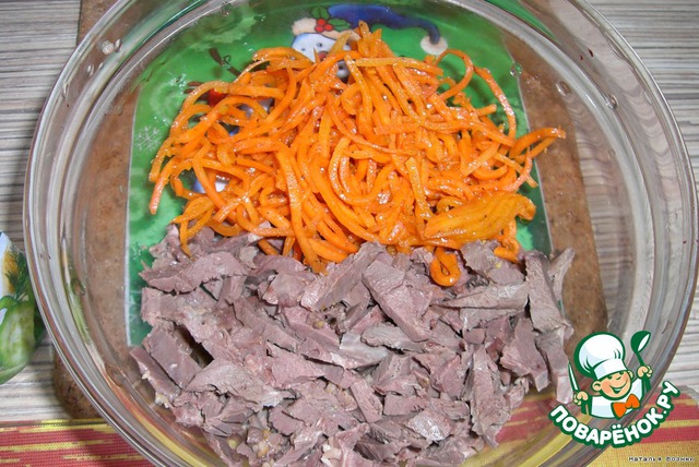 Сердце отварить, нарезать соломкой