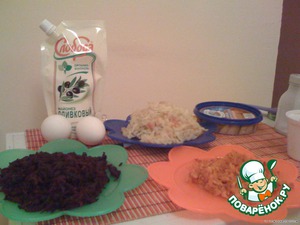 - Картофель, морковь, свекла - отварить и натереть на крупной терке.