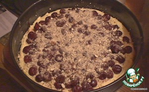 Сверху выложите вишню и посыпьте миндальной крошкой...