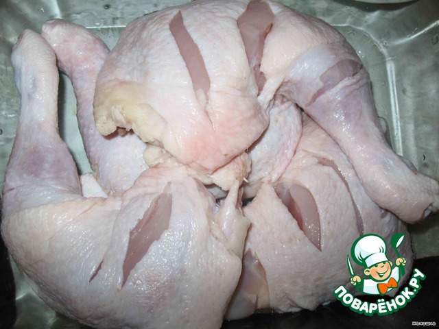• Заливаем курочку маринадом и маринуем на холоде около 2-3 часов.