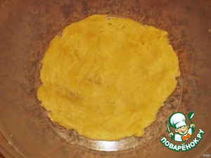 Выложить ровным слоем в форму, наверх на луковое тесто.