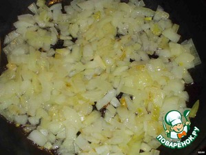 Лук очистить, нарезать и обжарить на растительном масле до мягкости, около 5 минут. Снять с плиты, дать остыть.
