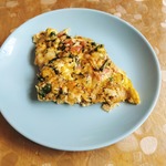 У меня помидорки не оказалось, поэтому пришлось его заменить томатной пастой, но лучше всё же использовать свежий помидор. Также можете добавить мелко нарезанной колбаски, если вы употребляете мясо.