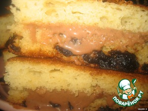 Выкладываем крем на половинки нашего пирога и соединяем их...